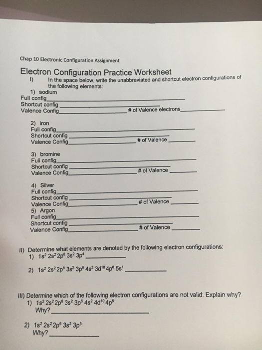 Solved Electron Configuration Practice Worksheet In The S Chegg Com from media.cheggcdn.com Electron configuration practice worksheet answer key. Out of these, the cookies that are categorized as necessary are stored on your browser as they are essential for the working of basic functionalities of the website. Electron configuration worksheet this worksheet provides extra practice for writing electron configurations. Chemists write electron configurations to describe and communicate the arrangement of electron configuration and orbital diagram worksheet diagram for you electron configuration practice worksheet siteraven parallel and. Types of chemical bonds worksheets answer key. Try to remember, you always have to care for your child with amazing care, compassion and affection. Solutions to electron configurations practice worksheet in the space below write the unabbreviated electron configurations of the following elements 1 sodium 1s2 2s2. For the following atoms and ions write the full electron configuration and the short hand configuration carbon full 1s 2 2s 2 2p 6 short hand hev2s 2 2p 6 bromine full 1s 2 2s 2 2p 6 3s 2 3p 6 4s 2.